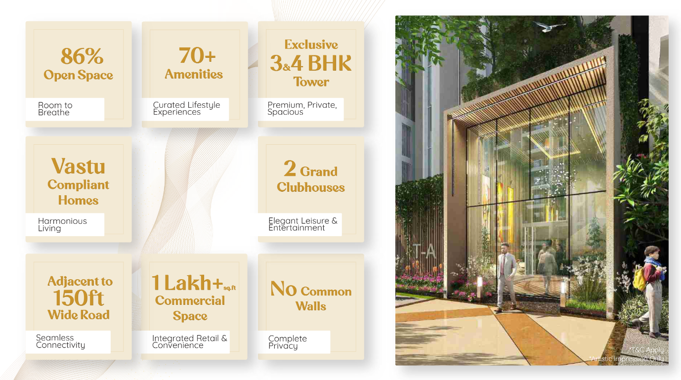 Six towers of G+31 floors, designed as a high-rise destination community.